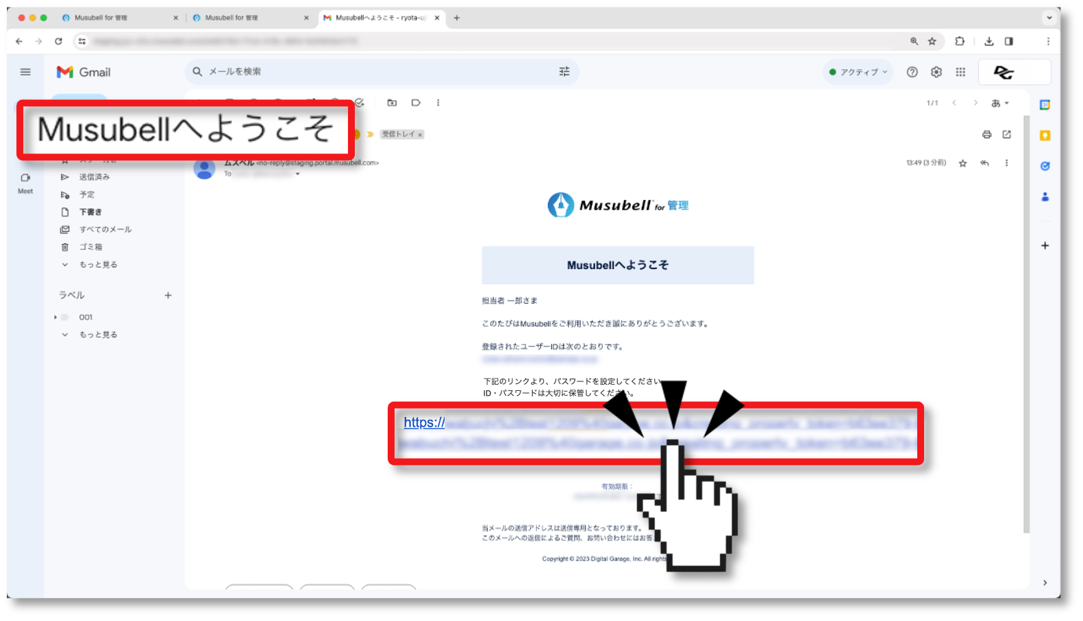 ・ログインページ(https://client-management.musubell.com/login)を開き、
