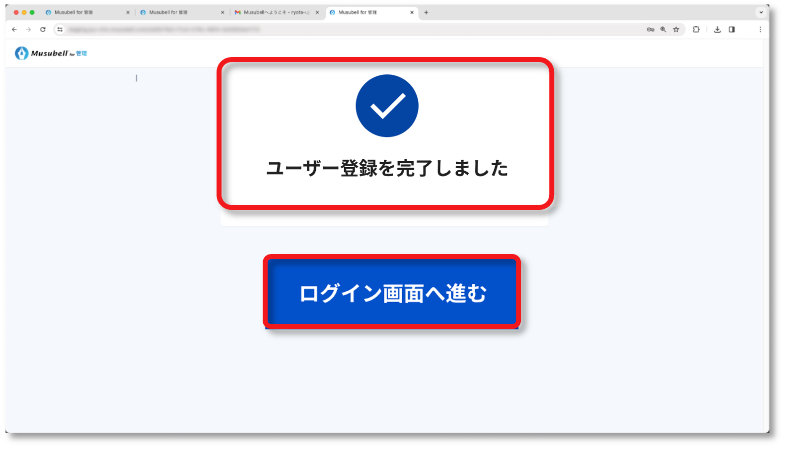 ・設定したいパスワードを入力し、[ユーザー登録を完了する]を押します。