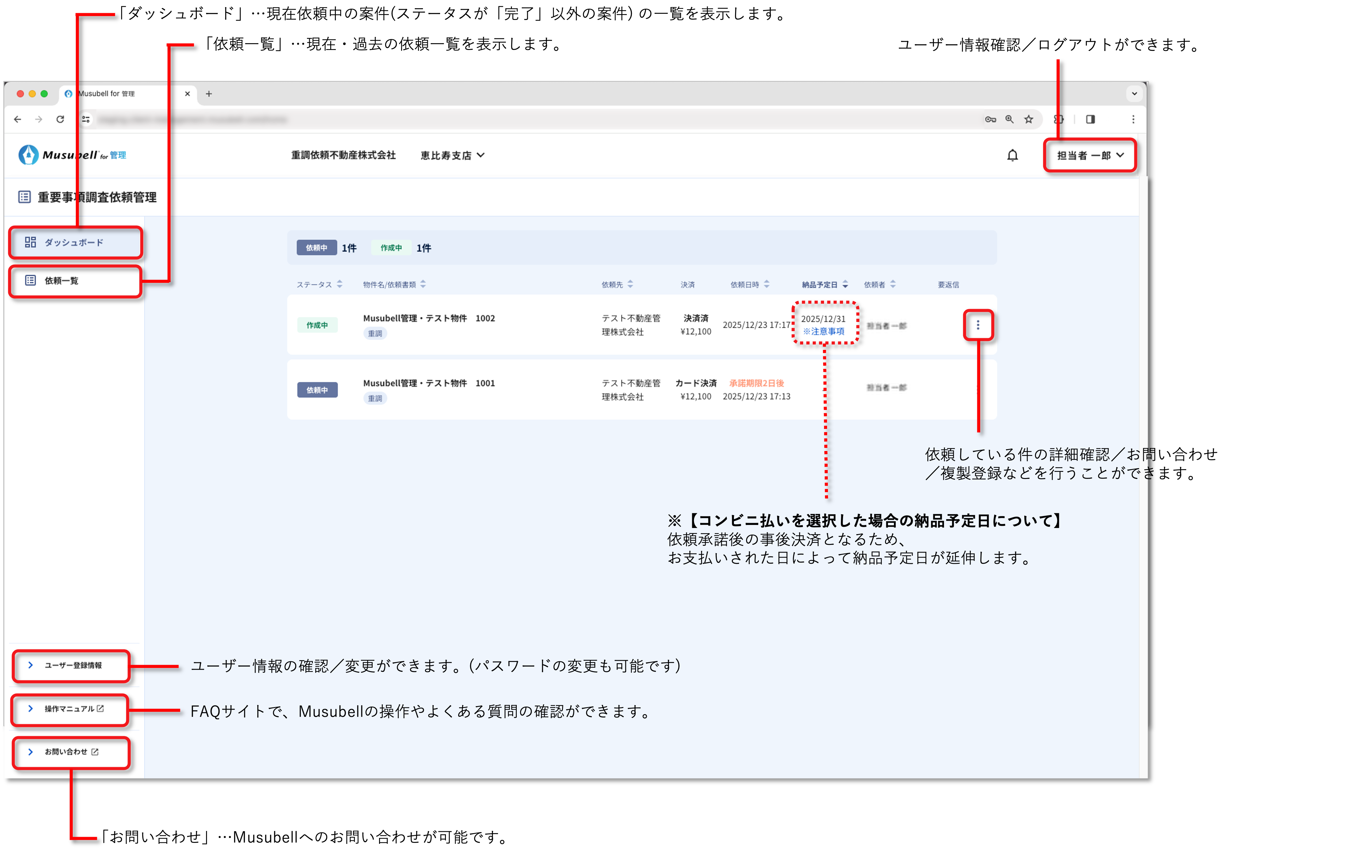 再度確認したい場合は「依頼一覧」メニューからご確認をお願いいたします。